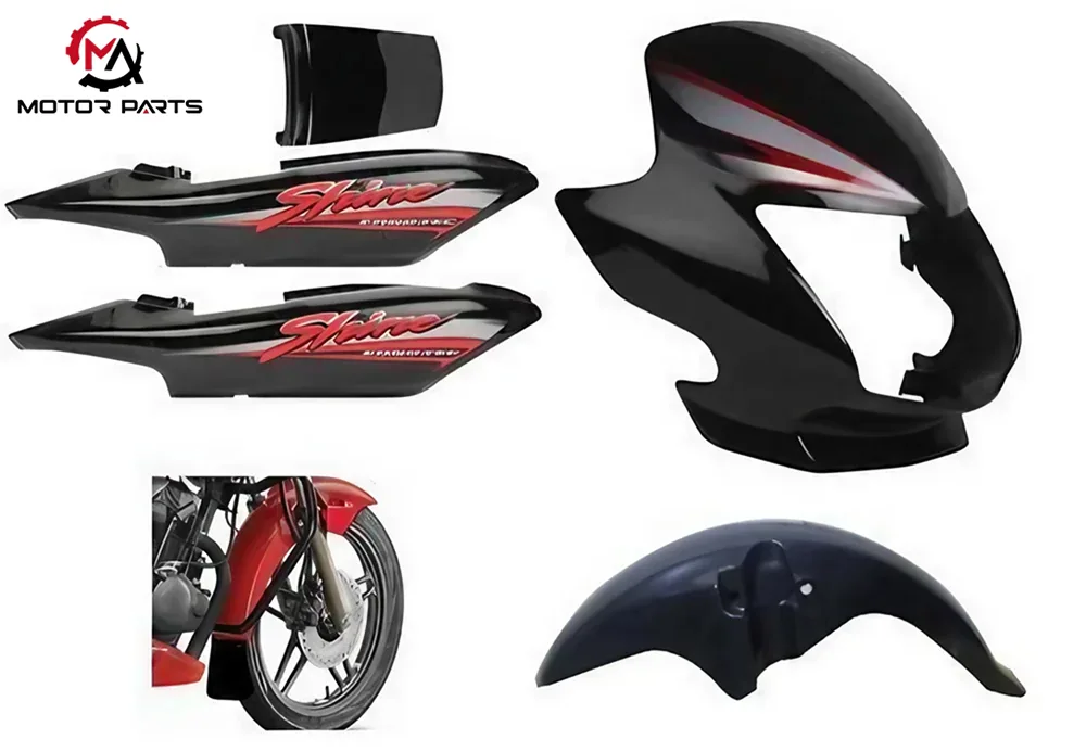The motorcycle plastic accessories are like sturdy armor, fully protecting the internal main components of the motorcycle from external harsh environments. The plastic side covers on both sides tightly cover key components such as the frame, battery, wiring, and air filter, providing excellent dust and water resistance. The side covers of ordinary car models can achieve IP54 dust and IPX4 water resistance levels, effectively avoiding problems such as short circuits and component corrosion; The front and rear fenders focus on intercepting the mud and water stirred up by the high-speed rotation of the wheels. The front fenders can prevent mud and water from splashing onto the engine and the rider's legs, while the rear fenders (some models use an extended design) are more effective in preventing mud and water from splashing onto rear passengers or vehicles. Besides, to further enhance protection capabilities, some models have installed anti-collision rubber strips on vulnerable areas such as the edges of the diffuser and the corners of the side covers, minimizing the damage caused by minor scratches to the components.