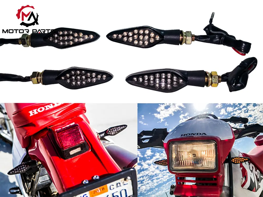 Motorcycle turn signal is a signal device used by motorcycles to transmit the intention of turning or changing lanes. It is installed at four positions on the front, back, left, and right of the motorcycle (some small motorcycles may only have two installed at each position). When the rider needs to turn left, right, change lanes, or make a U-turn, the corresponding turn signal can be turned on to let surrounding vehicles and pedestrians know the motorcycle's driving intention in advance, reduce traffic conflicts, and ensure driving safety.